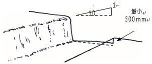 2、擺放格賓網(wǎng)的地基應(yīng)平整、干燥。墻體的基礎(chǔ)應(yīng)與地面水平線保持1~10度的夾角,用以防止格賓擋墻滑動(dòng),保證墻體穩(wěn)定性,至少300mm,在墻體的最前端也需如此。格賓網(wǎng)后面的邊坡傾角也應(yīng)保持在一個(gè)安全的角度,以保證邊坡穩(wěn)定。
