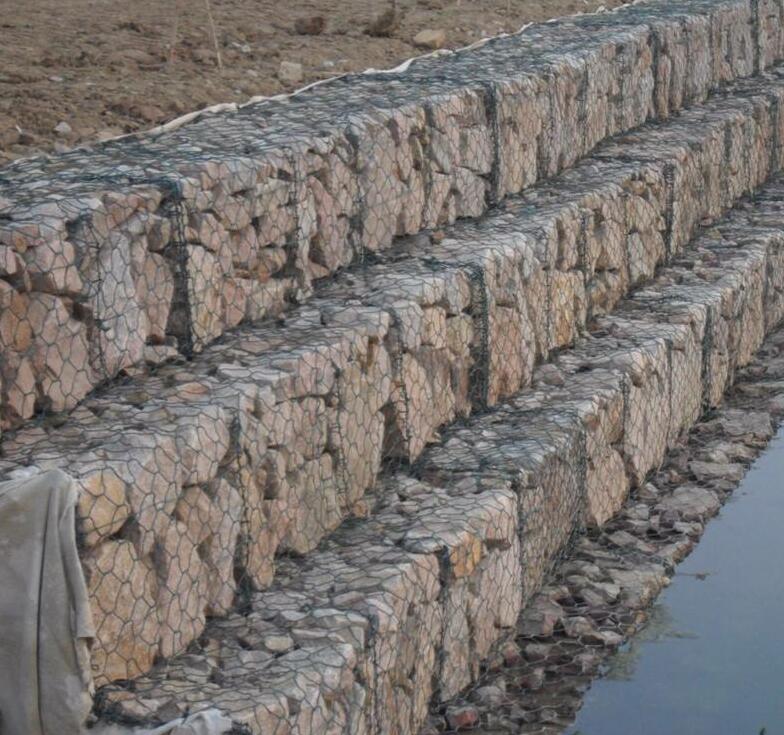 疊砌石籠網(wǎng)又叫石籠網(wǎng)箱,格賓網(wǎng)箱,鉛絲石籠網(wǎng),固賓籠綠濱墊. 石籠網(wǎng)主要用于河道整治工程,河道基礎(chǔ)加固工程,抗沖刷工程,防洪救災(zāi)等水利工程和土木工程. 石籠網(wǎng)優(yōu)勢: 1. 良好的柔性結(jié)構(gòu),可以承受大范圍的變形而仍不塌陷. 2. 生態(tài)環(huán)保,在工程施工好后,用土蓋好,在表面撒上一層草籽,等明年會形成一層天然的綠色草坪,并且省去了綠化的費用. 3. .施工簡便,無需特殊的技術(shù),只要將籠子綁扎好,再在里面裝好石頭即可. 4. 防腐蝕能力強(qiáng),在PH值6.5-7的時候可以使用70年不生銹 5. 運(yùn)輸方便,運(yùn)輸時可將石籠網(wǎng)箱像紙箱子一樣折疊運(yùn)輸. 6. 石籠網(wǎng)箱規(guī)格: 石籠網(wǎng)箱尺寸:2m*1m*1m,3m*1m*1m,4m*1m*1m,5m*1m*1m,4m*2m*1m..........(可加工定做) 7. 石籠網(wǎng)網(wǎng)孔尺寸:60mm*80mm,80mm*100mm,100mm*120mm,120mm*150mm,130mm*160mm,150mm*150mm,180mm*180mm,200mm*200mm 8. 石籠網(wǎng)絲徑:絲徑分為網(wǎng)絲直徑,邊絲直徑,綁扎絲直徑 9. 石籠網(wǎng)網(wǎng)絲直徑:2.0mm-4.0mm 10. 石籠網(wǎng)邊絲直徑:邊絲直徑一般大于網(wǎng)絲直徑0.5mm-1mm 11. 石籠網(wǎng)綁絲直徑:2.0mm-2.2mm