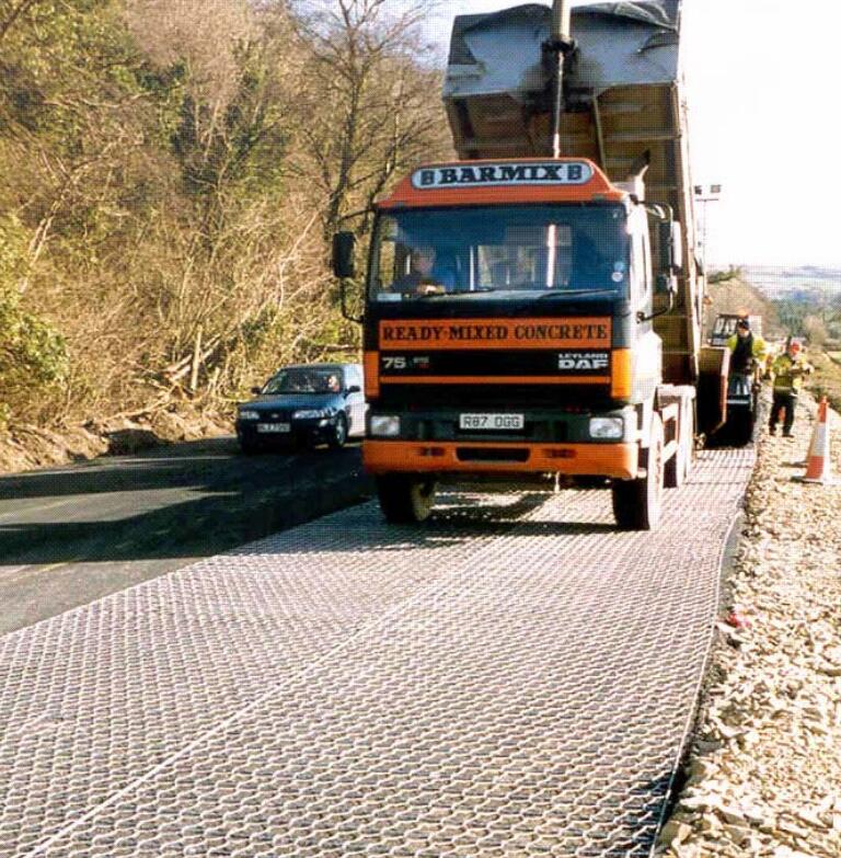 為了便于施工,卸貨時每隔25m-50m卸下一卷.就可將路面加筋網(wǎng)從卷的頂端而非底端展開.這樣使網(wǎng)子盡可能與公路表面接觸.接下來用輪胎式壓路機(jī)將網(wǎng)子軋平.這樣至少來回軋兩圈(4次),使網(wǎng)子與公路表層連得更緊.在轉(zhuǎn)彎處網(wǎng)子卷起,不平是正常的,由于石籠網(wǎng)具有柔韌性,路面加筋網(wǎng)在一定范圍內(nèi)可以拉成需要的形狀,并保持其堅(jiān)固性.