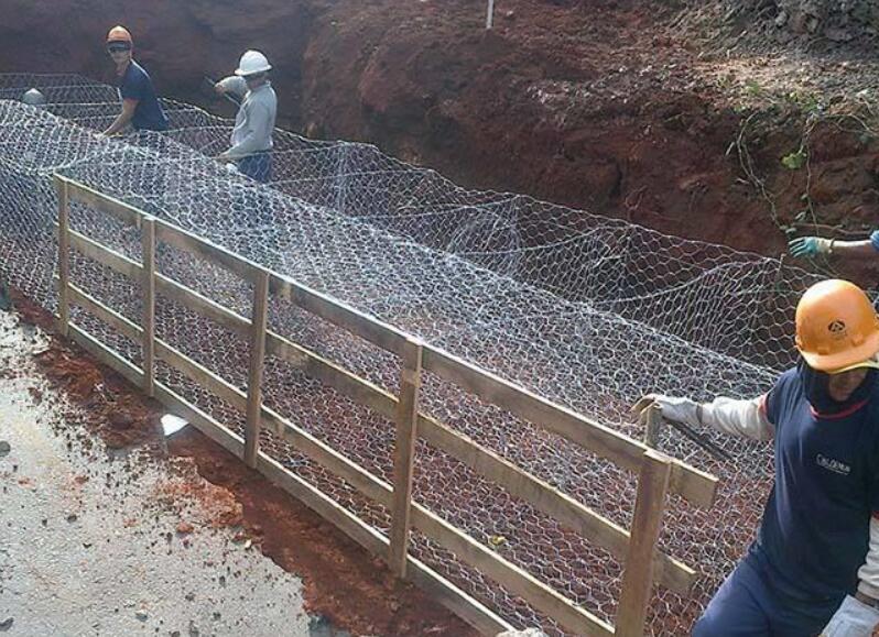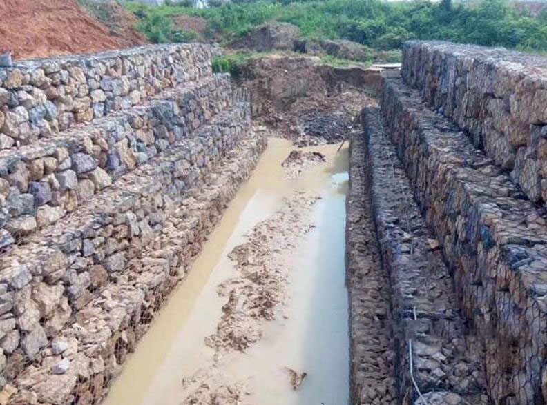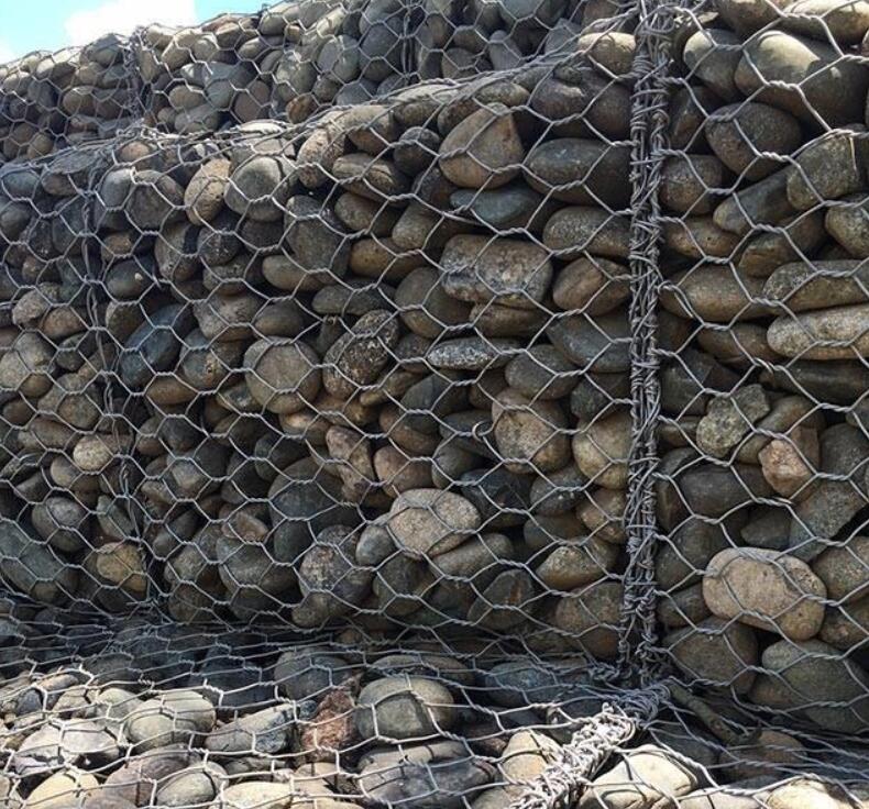 鉛絲石籠網(wǎng)箱箱在施工現(xiàn)場(chǎng)經(jīng)石頭填充,構(gòu)成具有柔性、透水性及整體性的結(jié)構(gòu), 如擋墻、河道襯砌、堰等支擋的防沖蝕工程. 鉛絲石籠網(wǎng)箱箱由間隔1米的隔板(雙絞合六邊形金屬網(wǎng)片)分成若干單元格,為了加強(qiáng)鉛絲石籠網(wǎng)箱箱結(jié)構(gòu)的強(qiáng)度, 所有的面網(wǎng)板邊端均采用直徑更粗的鋼絲。控制和引導(dǎo)河流及洪水泄洪壩、導(dǎo)流壩巖崩防護(hù)、防止水土流失、大橋保護(hù)、固土結(jié)構(gòu)、海濱防御工程、港口工程和擋土墻道路防護(hù).